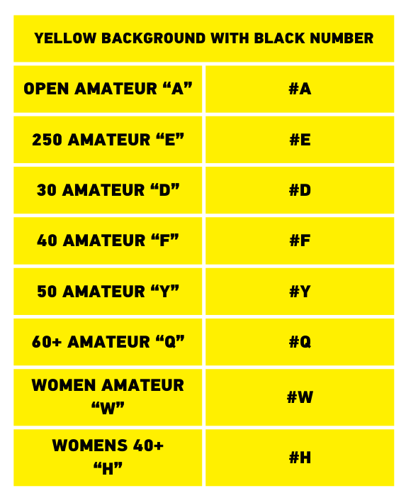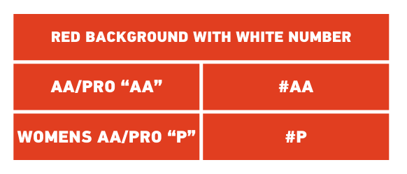 Whether you’ve just moved up a class, or are a first-time racer, you can find all the information you need below about your class number, letter structure and the required colors for your background and number based on the skill level you intend to compete in.